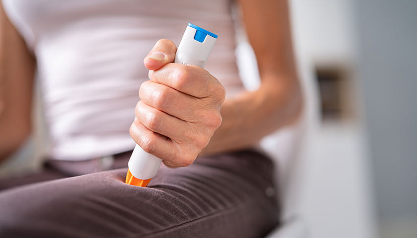 Если у вас возникла анафилактическая реакция, то вы вводите себе лекарство в большую мышцу верхней внешней части бедра. Эпинефрин быстро снимает симптомы.