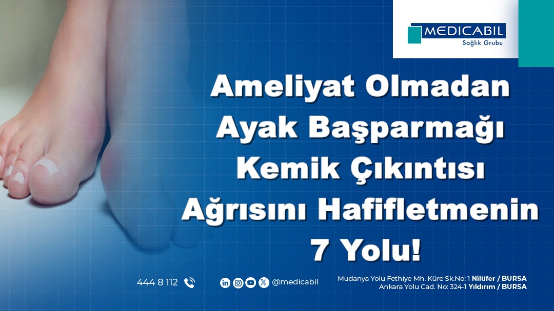 Ameliyat Olmadan Ayak Başparmağı Kemik Çıkıntısı (Bunyon/Halluks Valgus) Ağrısını Hafifletmenin 7 Yolu! başlıklı makalemizde konuya dair detayları inceleyeceğiz. Sıcak su ya da ayakkabılara konulan ekler ağrıyı hafifletebilir ancak bazen bunyonlar çok rahatsız edici bir hale gelebilir. Ster sandalet sezonu ister bot sezonu olsun, ayak başparmağınızın dibinde çıkan bunyon için bir şeyler yapmanın zamanının geldiğini düşünüyor olabilirsiniz.
